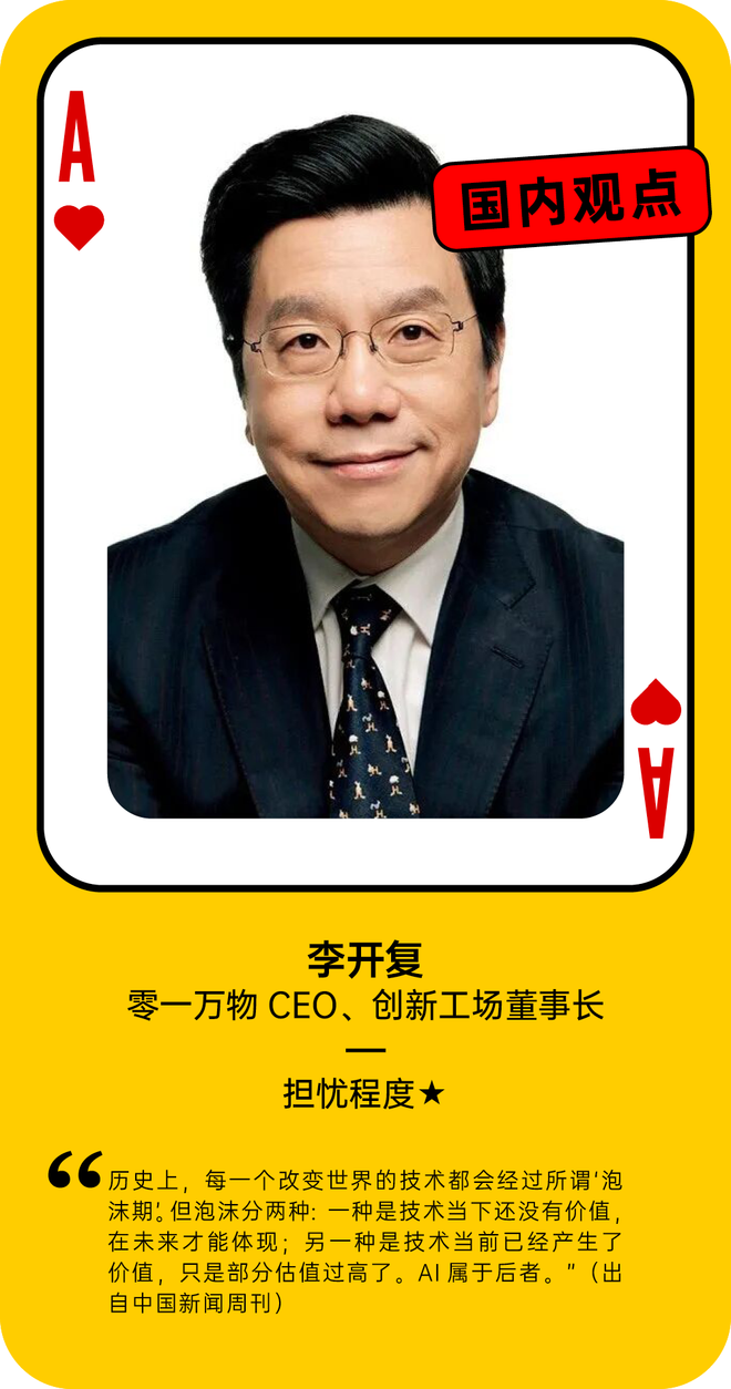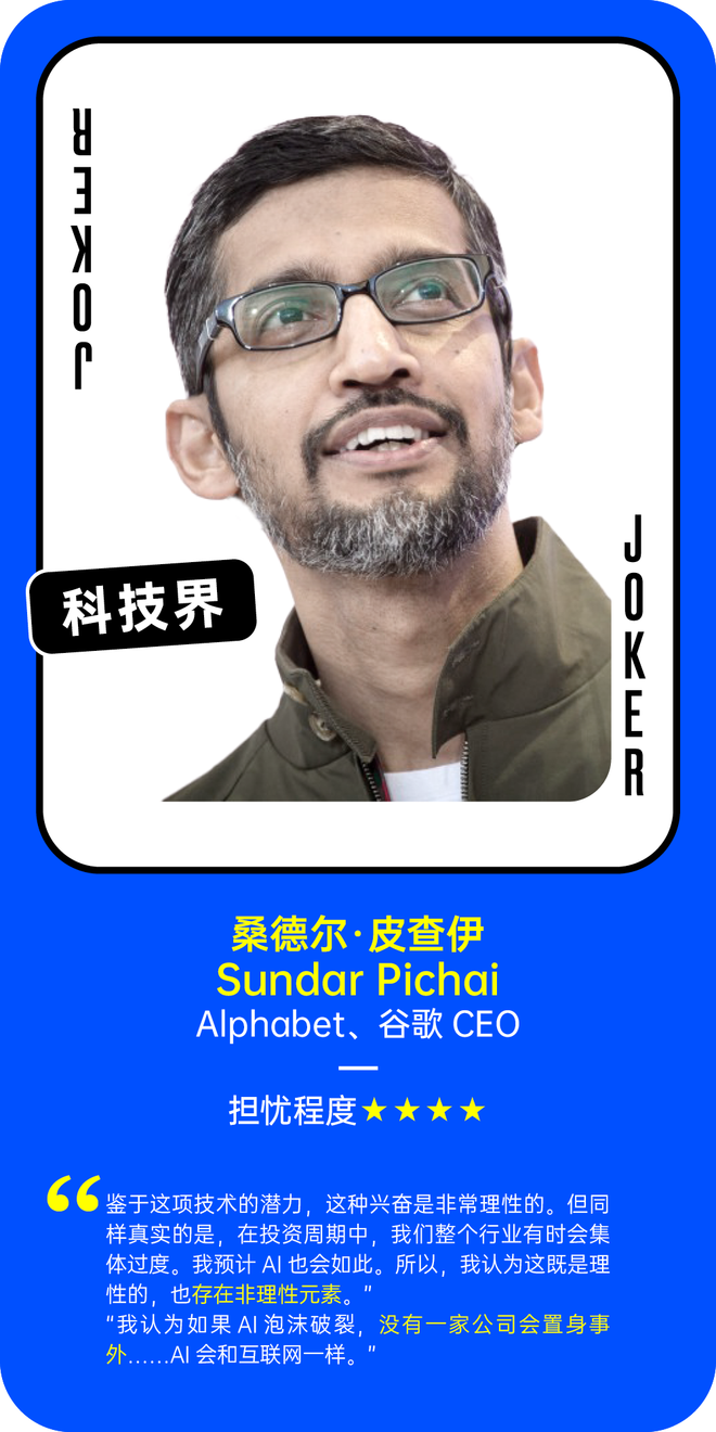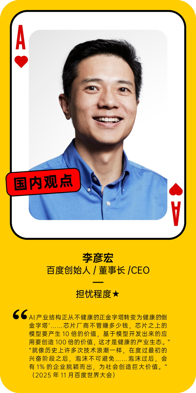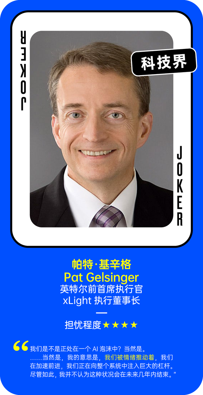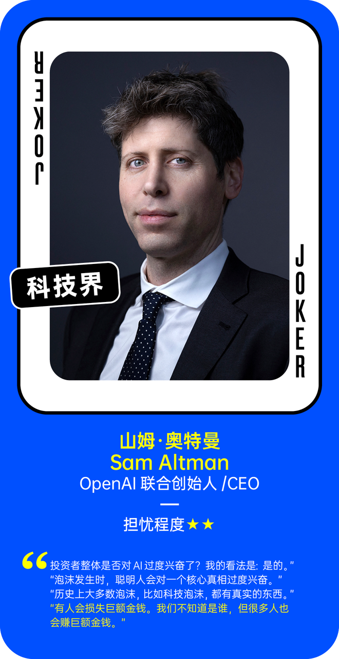 我们在此基础之上做了补充,引入了更多硅谷科技界的声音,以下是超过40位相关人士对“AI泡沫”的看法。