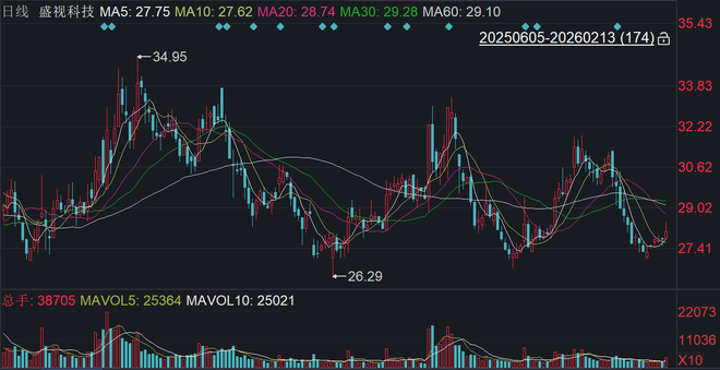 二级市场上,截至2月13日收盘,盛视科技上涨1.19%报28.06元/股,总市值约73.48亿元,近一年以来累计下跌约16%。