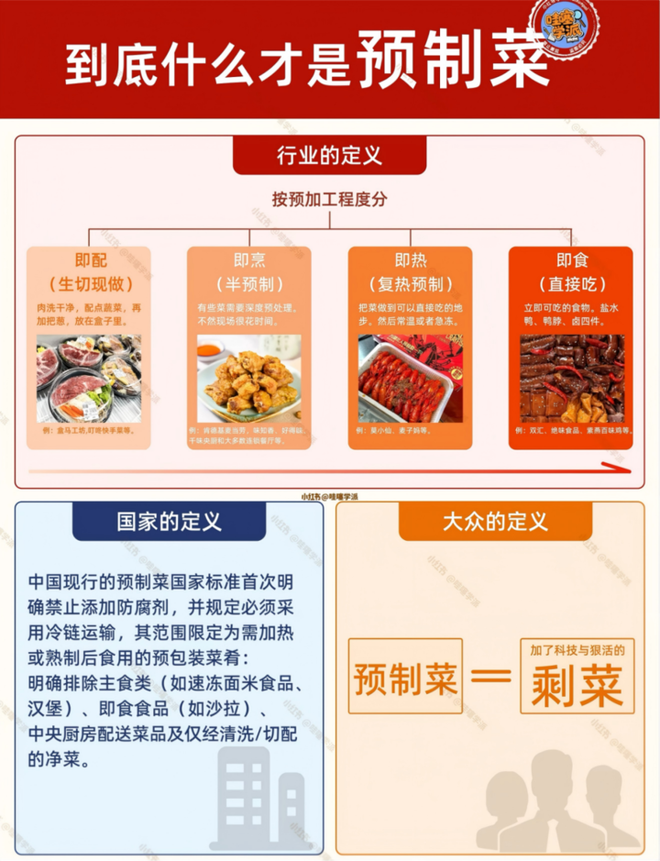 提前腌个肉,预制菜。提前切个葱花,预制菜。提前熬个汤,预制菜。厨师上班前喝了口水,都快被说成预制水了。
