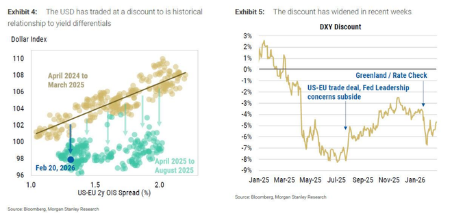 在美元市场,摩根士丹利预计美国政府使用即时关税授权作为外交政策工具的余地减少,可能在边际上降低与投资者对持有美元敞口保持谨慎相关的美元负面风险溢价。