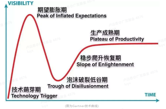 他将新技术发展划分为三个阶段,即技术萌芽期到期望膨胀期、期望膨胀期到泡沫破灭期、泡沫破灭期到产业化成功期,根据不同阶段的资产估值特征和产业发展状态制定策略。