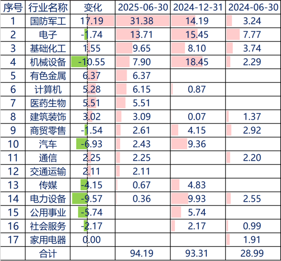 数据来源:Wind,2024年中报至2025年中报,行业分类采用的是申万一级行业,行业配置比例是指行业持仓市值占基金资产净值的比例