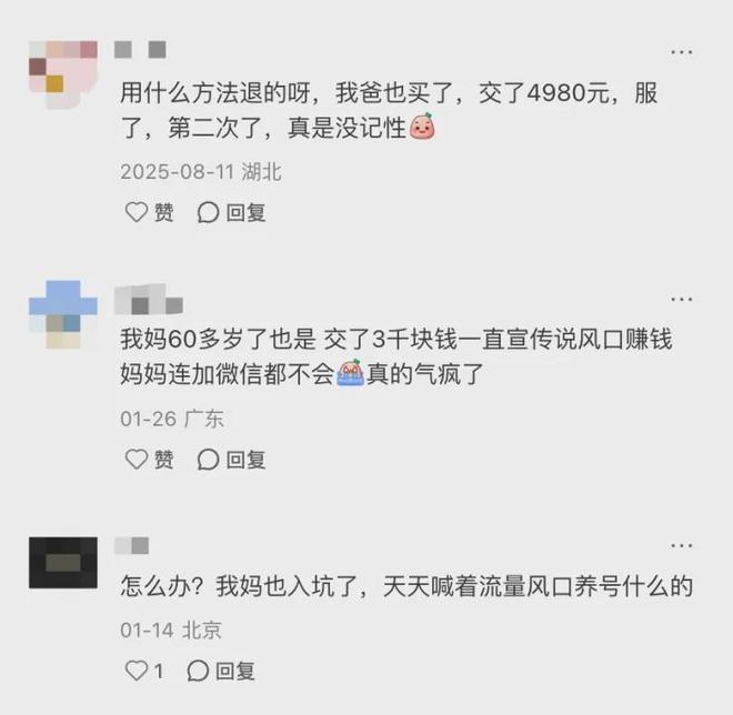收益少得可怜,老年人在白忙一场中变现遥遥无期,去问机构和老师永远是“你还不够努力”的新一重PUA。