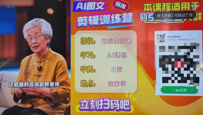 “AI课程在家自学”“0学费”“月入过万的副业”“只需手机”等标签,条条都戳中在家无事、又想为退休金创收的老年人的敏感神经。