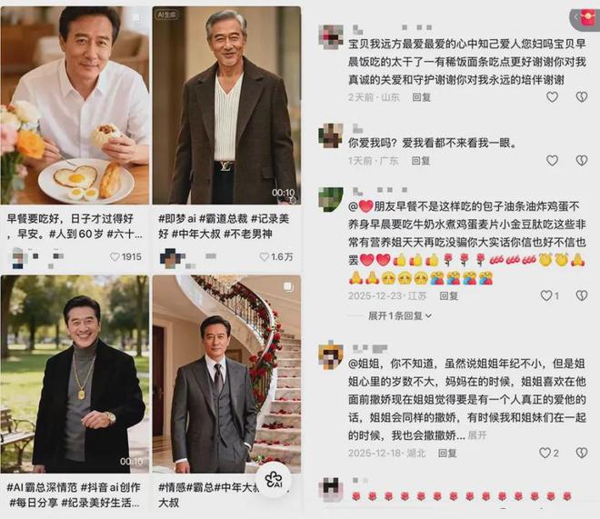 哪怕视频和图片的上方明晃晃写着“AI生成”,还是会有大批老年人反复留下真情实感的评论。
