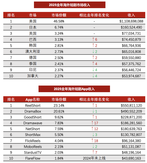 海外市场的参照来自短剧。浙商证券数据显示,2025年海外短剧App下载18.55亿次,同比增长超过300%,市场规模达到40亿美元,2026年有望突破50亿美元。