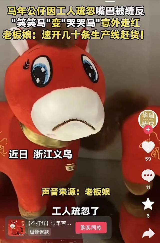 马年"第一顶流"是哭哭马,工作人员失误把嘴装反了,被发到网上反而大火。