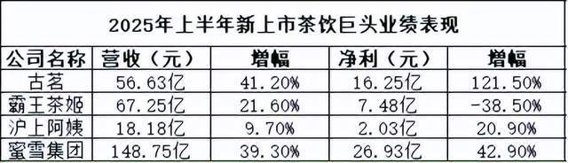 这一年,古茗、蜜雪集团、霸王茶姬、沪上阿姨四家头部品牌扎堆登陆资本市场,上演了史无前例的"集体IPO"。蜜雪冰城港股上市首日市值即破千亿港元,霸王茶姬成为"新茶饮美股第一股"。六大上市茶饮巨头2025年上半年合计净利润突破55亿元,交出了一份傲人的成绩单。