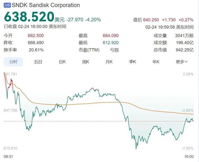 红星资本局2月25日消息,美东时间周二,近期备受市场追捧的存储芯片龙头闪迪股价遭遇空头突袭。知名做空机构香橼资本(Citron Research)公开宣布持有闪迪空头头寸,并发布详细看空报告。