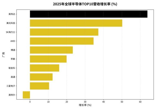 虽然传统汽车芯片厂商如英飞凌、意法半导体未进入TOP10,但它们在功率半导体和微控制器领域的稳健增长,是半导体市场另一条重要的增长曲线。