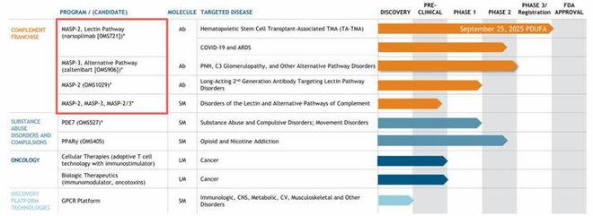 图:Omeros公司在研管线一览,来源:公司官网