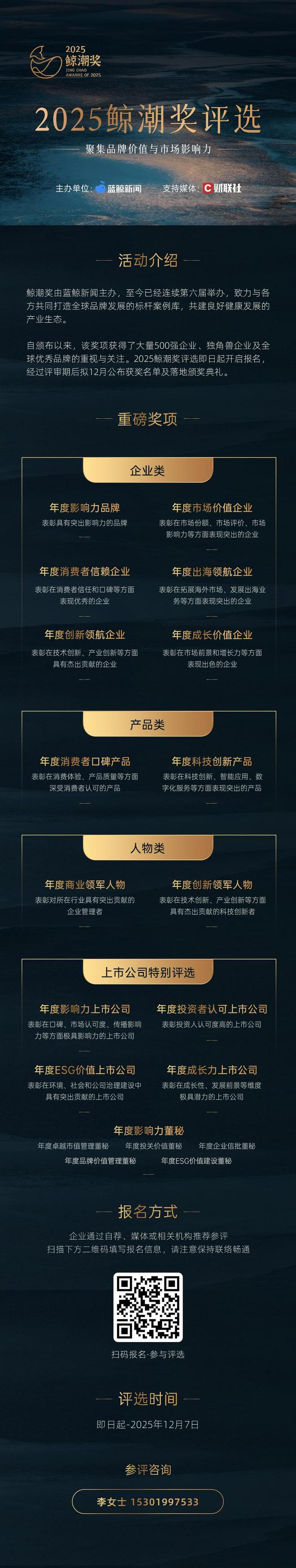 聚焦品牌价值与市场影响力,全球领军企业报名开启,角逐2025鲸潮奖!