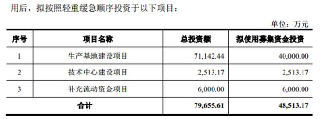 元创股份此次IPO欲募集48513.17万元分别用于生产基地建设项目、技术中心建设项目、补充流动资金项目,具体情况如下: