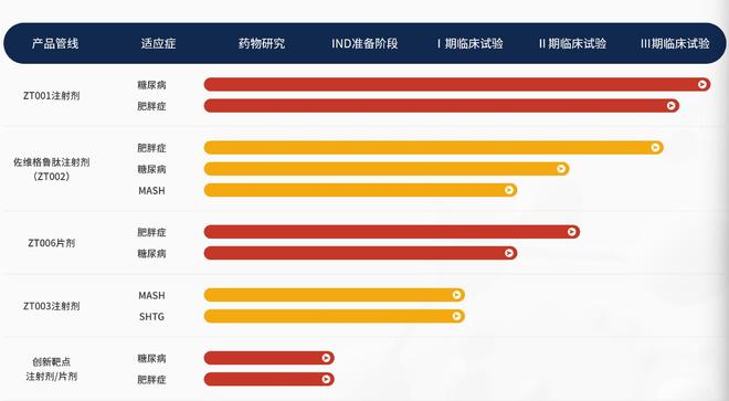 此外,其司美格鲁肽生物类似药ZT001在糖尿病、减重适应症方面,分别与通化东宝和爱美客展开合作,加速临床和商业化落地。