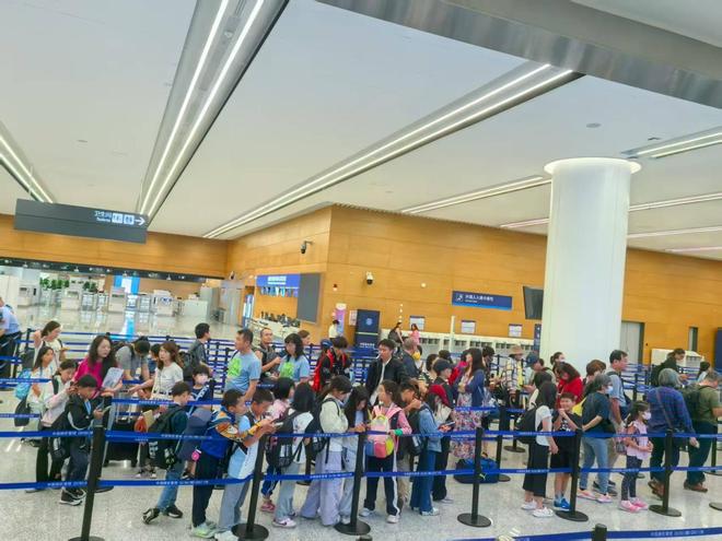 ▲旅客在机场办理出入境手续