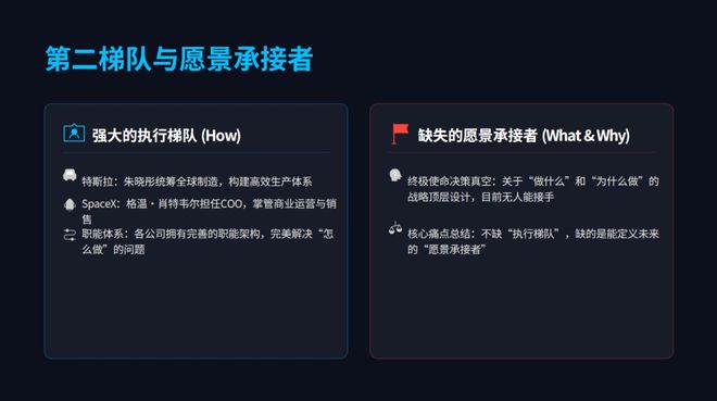 准确的描述是:马斯克帝国不缺“执行梯队”,缺的是“愿景承接者”。