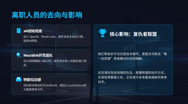 这些人散落在新能源、AI、脑机接口的各个角落。他们带走的不仅仅是技术细节,更是对马斯克“第一性原理”思维模式的深刻理解。