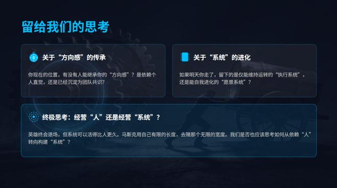 第二个问题:如果明天你走了,你留下的东西是只有“执行系统”,还是也有“愿景系统”?