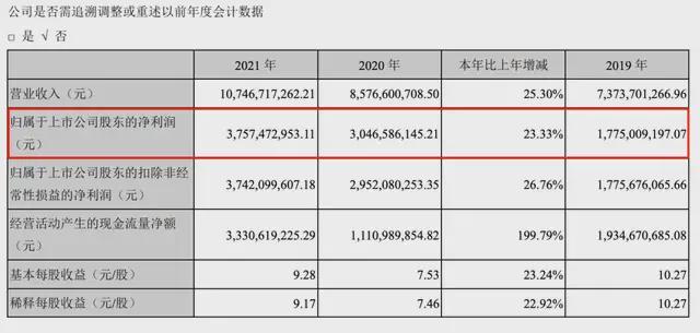 这一年,公司股价摸到历史高点,可归母净利润增速却从 2019-2020 年的 70% 以上,骤降至 23.33%。