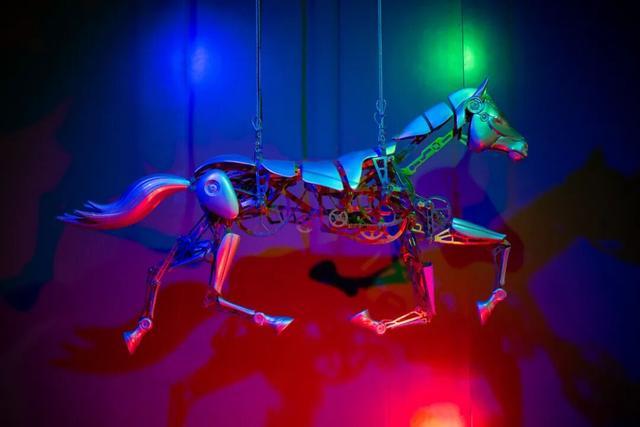 展览中肩高1.4米、体长2.6米的机械马,内部由超过500个精密金属构件组成,关键结构件采用工业级3D打印一体成型,集成多连杆机构和曲柄滑块传动系统,模拟真实马的骨骼与关节运动。当观众步入特定区域,高精度毫米波雷达瞬时感知,触发“生命赋形”的互动过程。