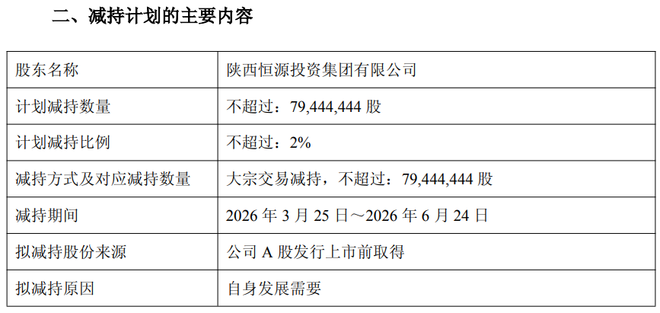 2025年4月11日至5月12日,恒源投资通过大宗交易方式累计减持其所持有的7932.78万股公司股份(占公司总股本的2%),累计套现2.96亿元。