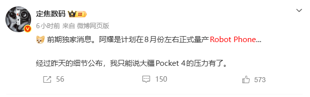 至于Robot Phone,有数码博主“定焦数码”在社交媒体平台上透露预计最快在8月量产上市。但截至发稿时,荣耀方面尚未对此作出回应。