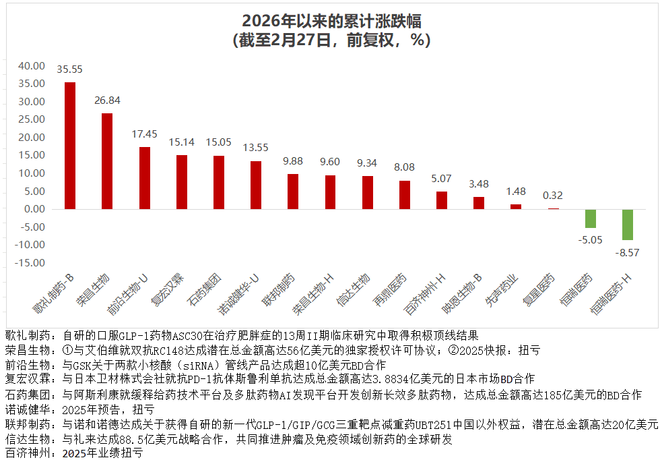 虽然2025年9月以来,对外授权的BD交易“祛魅”,创新药板块出现回调;但今年随着药企有高质量大额BD交易落地,以及多家药企业绩预告扭亏或减亏,核心产品临床数据有积极进展等情况下,资本市场有所回暖。