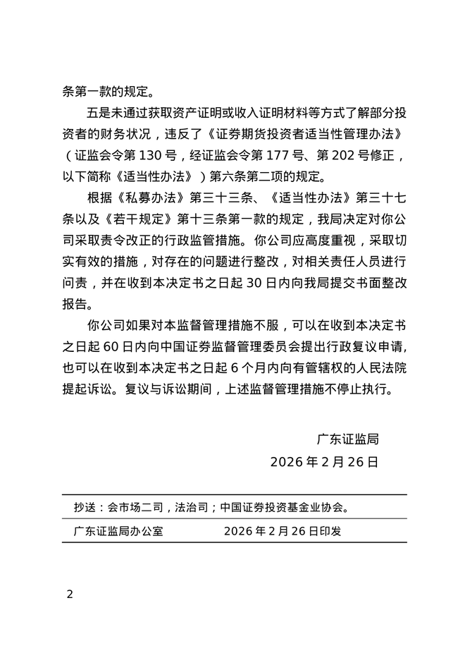 对此,广东证监局决定对泽元私募证券投资基金管理(广东)有限公司采取责令改正的行政监管措施。