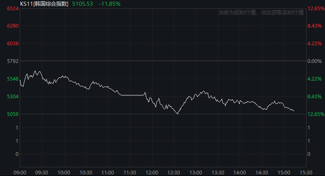 韩国股市连续第二日大幅收跌,韩国综合指数跌超12%,现代汽车跌近16%,三星电子跌近12%。