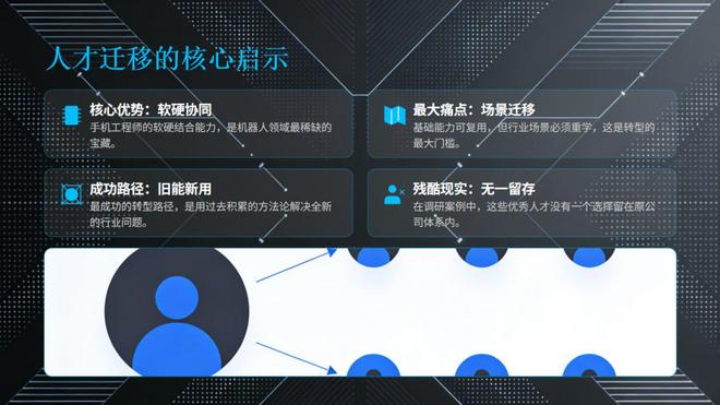 如果说大厂战略是基因的必然,那么人才出走,则是个体对组织局限的突围。四位工程师的故事,拼凑出一幅完整的 “手机人→机器人” 能力迁移图谱。