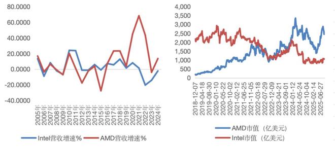 图:Intel和AMD业绩及市值变化对比 数据来源:wind,36氪整理