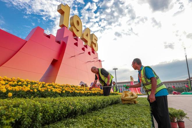 中国人民抗日战争暨世界反法西斯战争胜利80周年纪念活动举办在即,目前,天安门广场核心区布置已基本就绪。