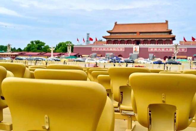 城墙红座椅与天安门城墙呼应。北京日报客户端 图