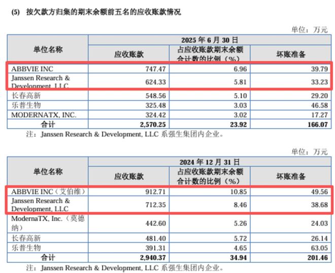 从应收账款数据来看,报告期各期末,公司应收账款账面净额分别为7880.34万元、8005.97万元、7742.05万元和9893.92万元,占流动资产比例介于10.07%至13.09%之间,2025年上半年前五大应收账款中境外客户占三家(艾伯维、强生、莫德纳),合计近1700万元。