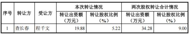 此次股权转让还曾因工商变更操作失误分两次完成:首次变更误将“公司总股份9%”填写为“实控人查长春个人股份9%”,直至次月才完成修正,暴露了公司早期股权管理的不规范。