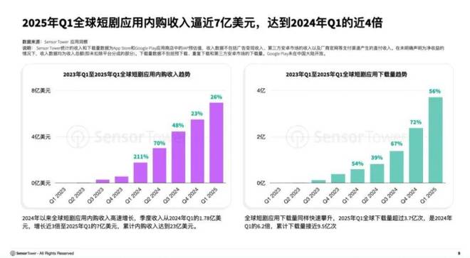 2025年第一季度,枫叶互动旗下的ReelShort和点众科技旗下的DramaBox内购收入分别增长31%和29%,达到1.3亿美元和1.2亿美元,包揽海外短剧应用收入榜和增长榜冠亚军。