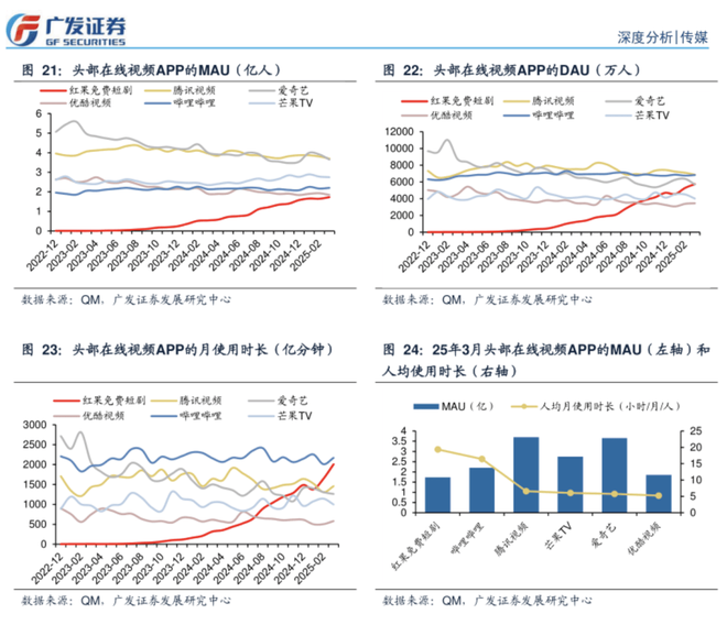 对于长视频平台,后发者红果也来了一场"降维打击"。根据QuestMobile的数据显示,2025年6月,红果月活达到2.12亿,正式超越传统长视频平台优酷的2.006亿,与哔哩哔哩月活用户量也仅相差1300多万,同比增速高达179.0%,更是让一众长视频平台望尘莫及。