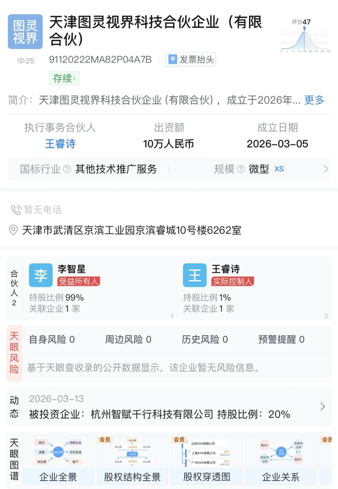 而在杭州智赋千行的股东名单里,同样的比例对应着一个名字——李智星,也就是智谱华南事业部负责人。