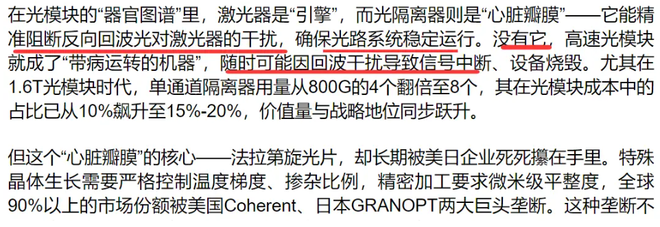 2026年二季度,法拉第旋光片供应将达缺货峰值,其中1.6T光模块专用高端旋光片缺口将超过40%,供需失衡将持续到2026年底。