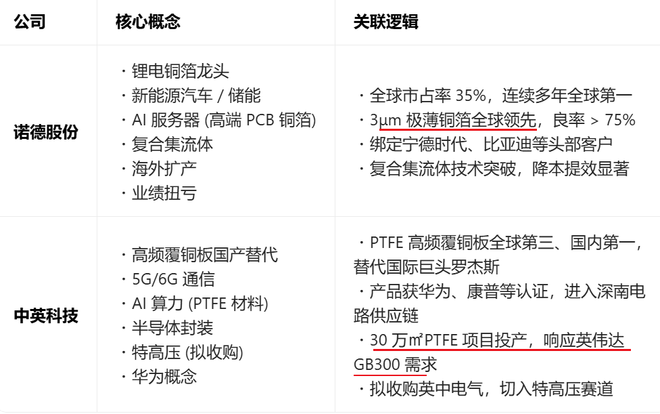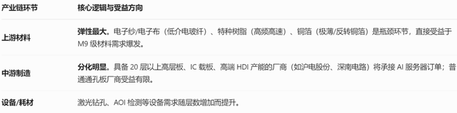 其核心逻辑是:高端铜箔→覆铜板/PCB→高端电子设备,一层层向上游传导性能要求。