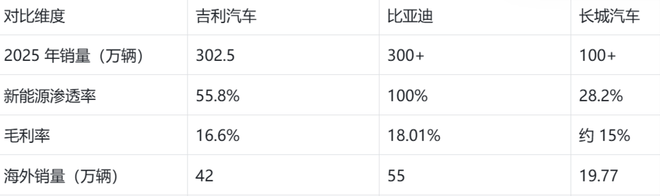 在2025年这个新能源汽车市场竞争白热化、智能化技术加速落地的关键年份,吉利汽车交出了一份亮眼的成绩单:全年销量突破302万辆,同比增长39%;营收达到3452亿元,同比增长25%;核心归母净利润144.1亿元,同比大幅增长36%。