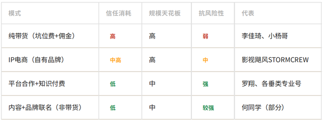 减少信任消耗型商业化,增加内容能力输出型商业化。但困难在于前者来钱快,后者慢。董宇辉式的带货和影视飓风式的IP电商,收入规模都在亿元级别;而纯内容+知识付费的路,在中国市场的天花板已经被反复验证过了。