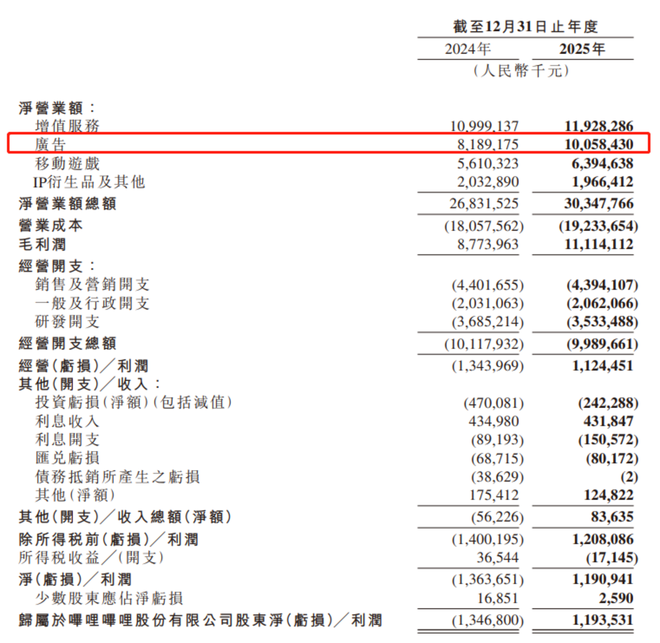 2025年,B站广告收入100.58亿元,同比增长23%。一个主要原因在于,公司尝试将AI与LLMs更深入地融入商业算法、广告创意生成以及智能投放中,使得AI相关广告投放表现尤为突出,全年投放同比增长超150%。