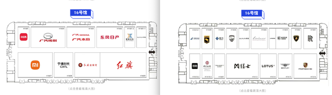 其中,16号馆变化最明显。蓝鲸汽车记者翻阅近几年的的展位图发现,该馆此前都被标注为"豪车馆",但今年,其被标为了"整车馆";该馆此前的保时捷、宾利、兰博基尼、劳斯莱斯等品牌,今年也被换成了小米汽车、红旗等车企。