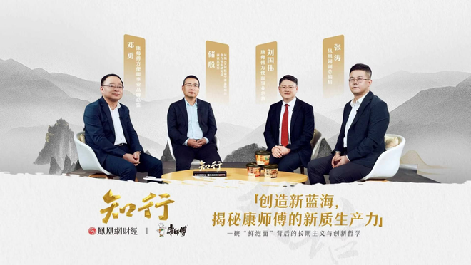 近日,凤凰网财经《知行》主持人凤凰网副总编辑张涛,与康师傅方便面事业总裁刘国伟、品牌总监邓勇,以及著名学者、盘古智库研究员储殷展开了一场深度对话,共同探讨一碗“鲜泡面”如何撬动行业新增量,以及康师傅如何以长期主义迎接未来挑战。