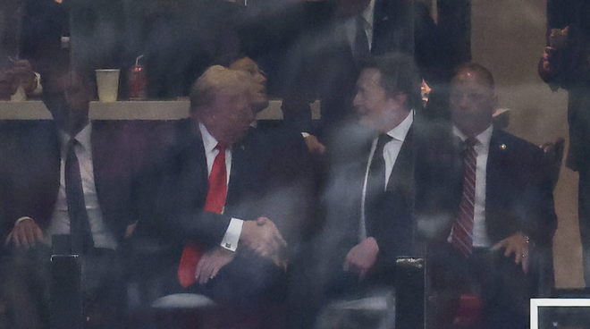 据Axios报道,特朗普与马斯克在柯克的追悼会上见面并握手,这是两人三个月前公开决裂后的首次互动。