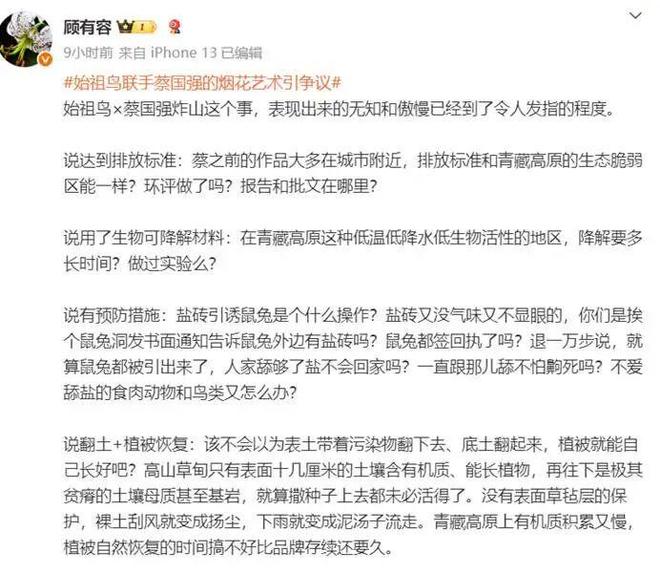 火药在海拔 5500 米的喜马拉雅山脊炸响,蔡国强镜头中的“升龙”尚未消散,一场舆论海啸已汹涌而来。