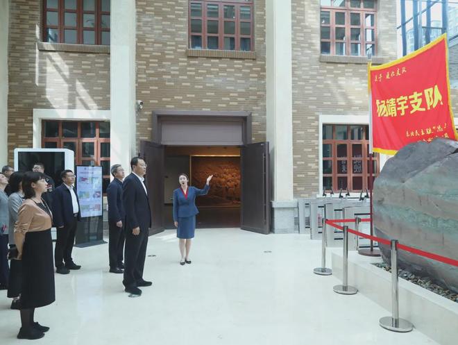 辽源市委书记沈德生等市领导在吉林省近现代史展馆听取“杨靖宇支队”战旗讲解。“辽源发布”微信公号 图