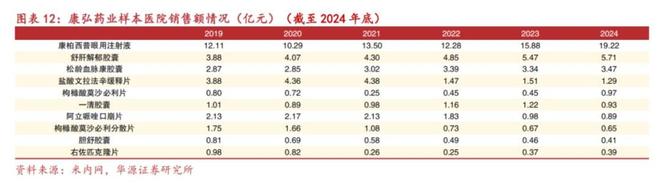 根据米内网数据,2024年康弘药业两个中成药大单品在样板医院销售额增长微弱,分别仅为4.39%和3.89%,增长空间已经非常狭小。