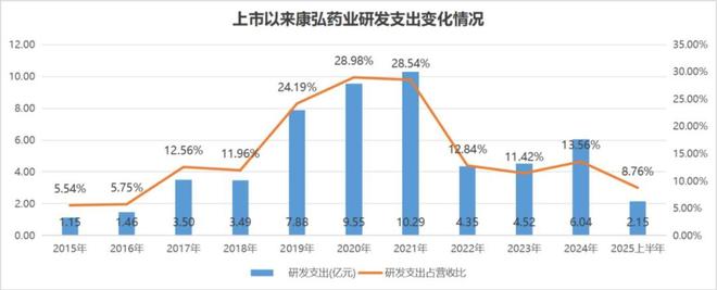 因此康柏西普的红利期还有多长,已经不好说了。康弘药业自身也是危机感十足,2019年以来研发支出总计将近45亿元,年平均占营收比接近20%,在国内药企中也属罕见。